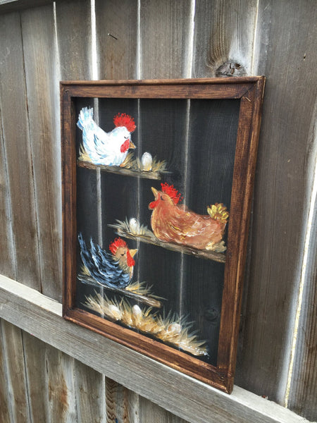 Chickens,rustic art,country art ,Chickens friends,painted windows,screens